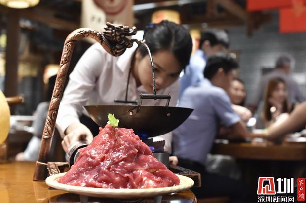 這道堂烹酸菜牛肉,豈止于嫩!肉片厚、大,與鍋中的酸菜共煮,煮久不老。據(jù)說(shuō)只有深圳分店才有的新品,符合本地食客口味。