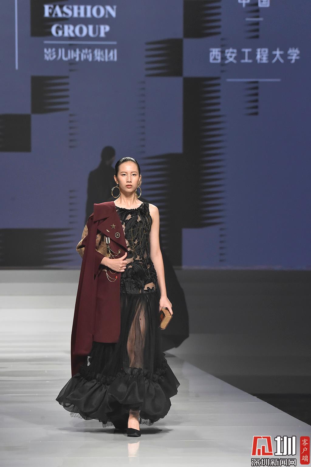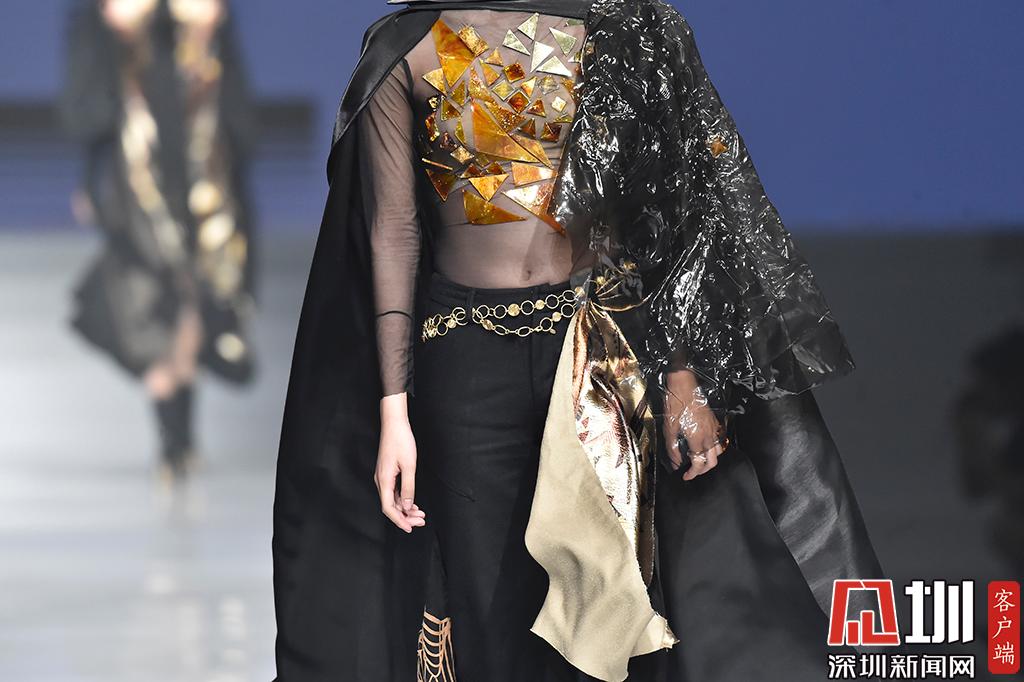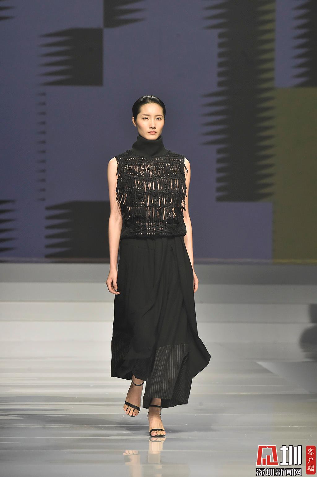 時裝優(yōu)秀學生組展示環(huán)節(jié),設(shè)計師肖榕作品,其作品以純黑色系為主