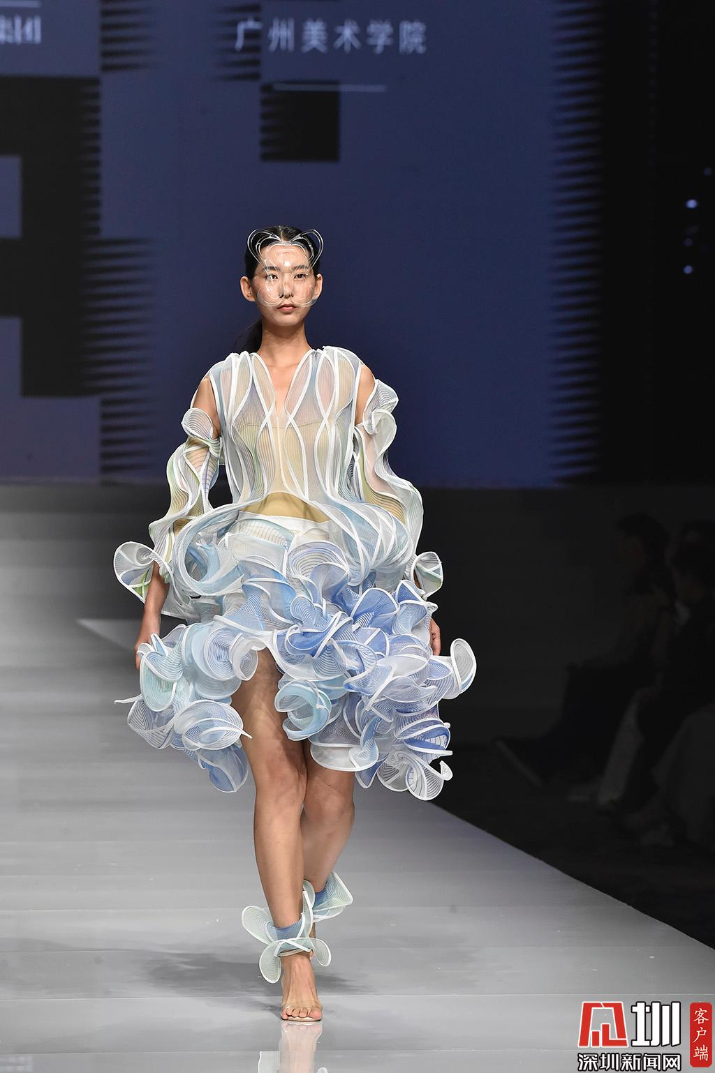時裝優(yōu)秀學生組展示環(huán)節(jié),衣服凸顯了設(shè)計師的設(shè)計理念
