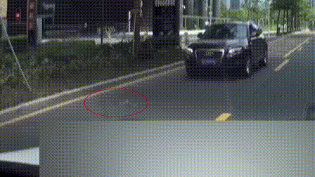 鉆進了人行道的綠化叢里面