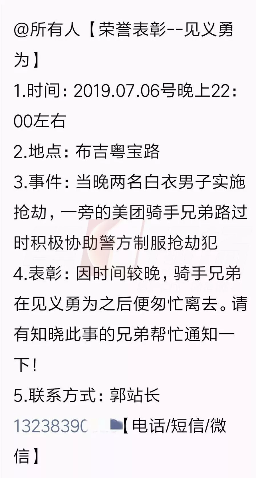 為了尋找這位低調的外賣小哥,布吉派出所找到了美團公司。一番周折,7月7日下午,見義勇為的外賣小哥被找到了。
