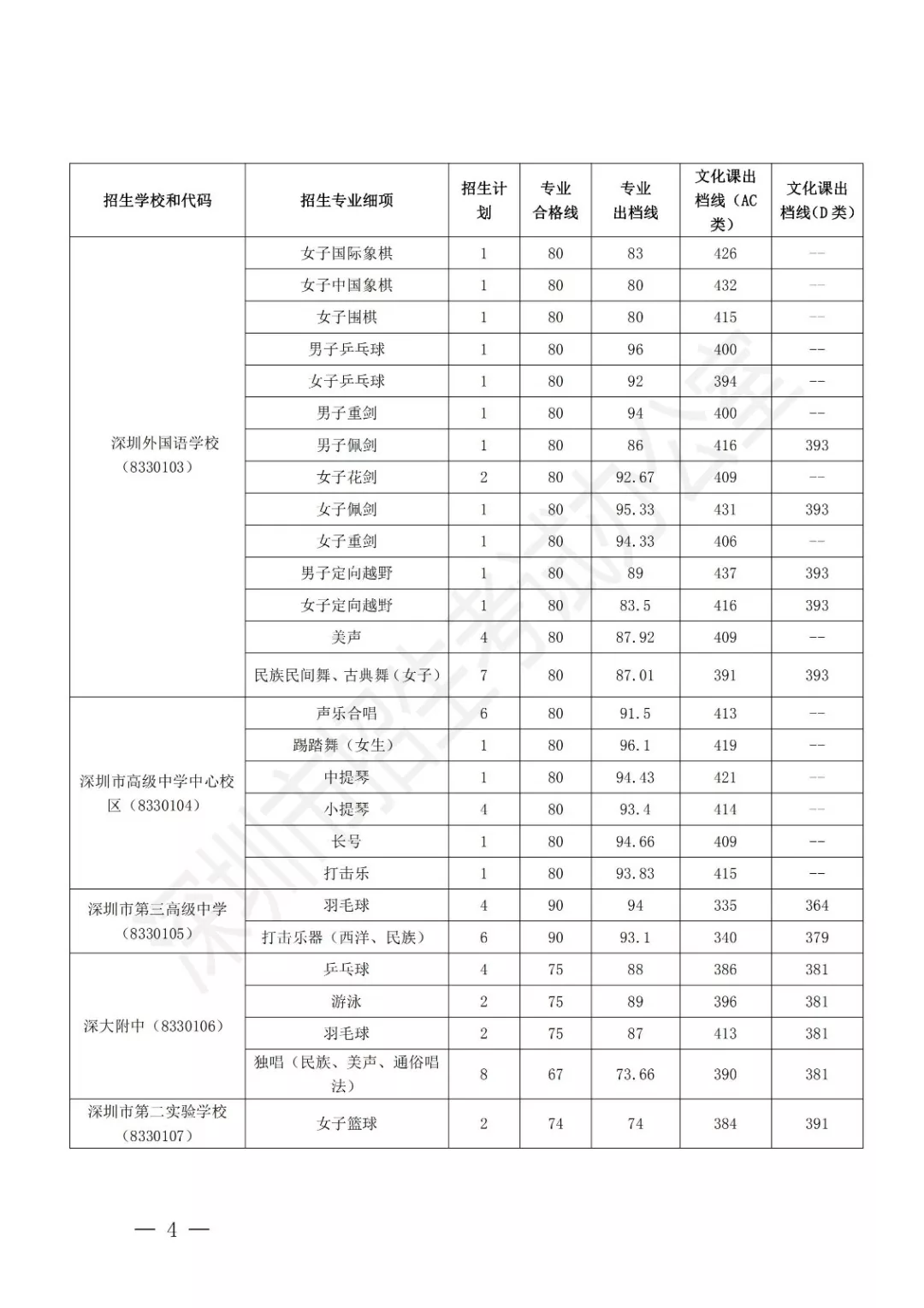 深圳市2019年公辦高中特色團(tuán)隊錄取標(biāo)準(zhǔn)
