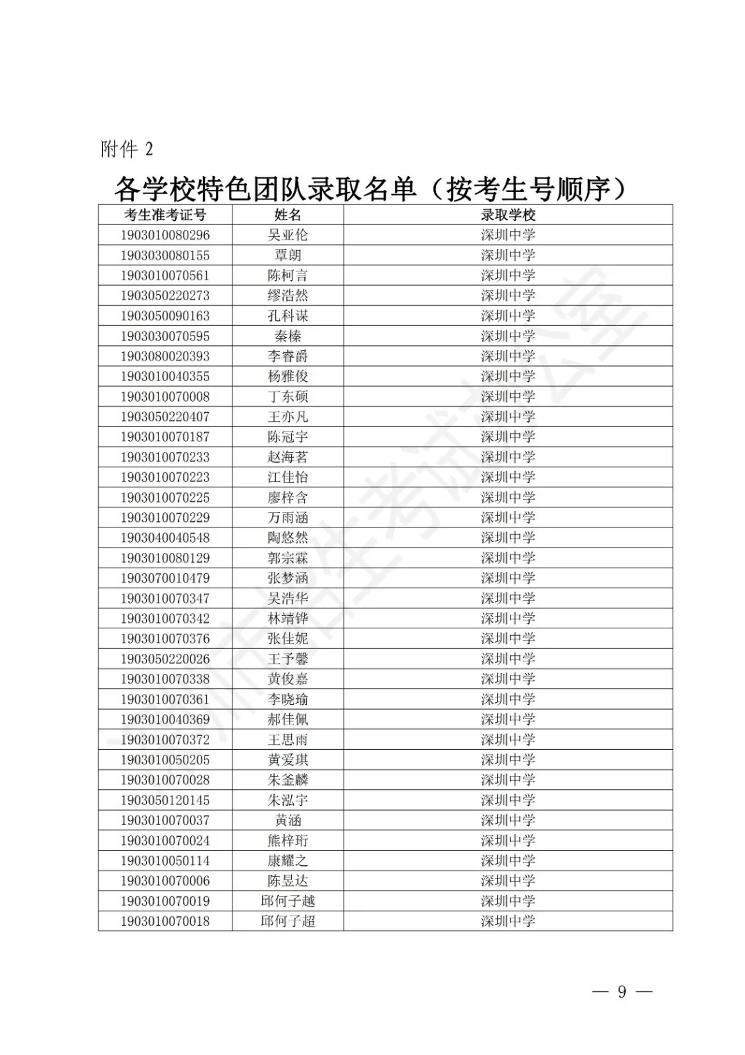深圳公布2019年公辦高中特色團(tuán)隊錄取標(biāo)準(zhǔn) 附錄取名單