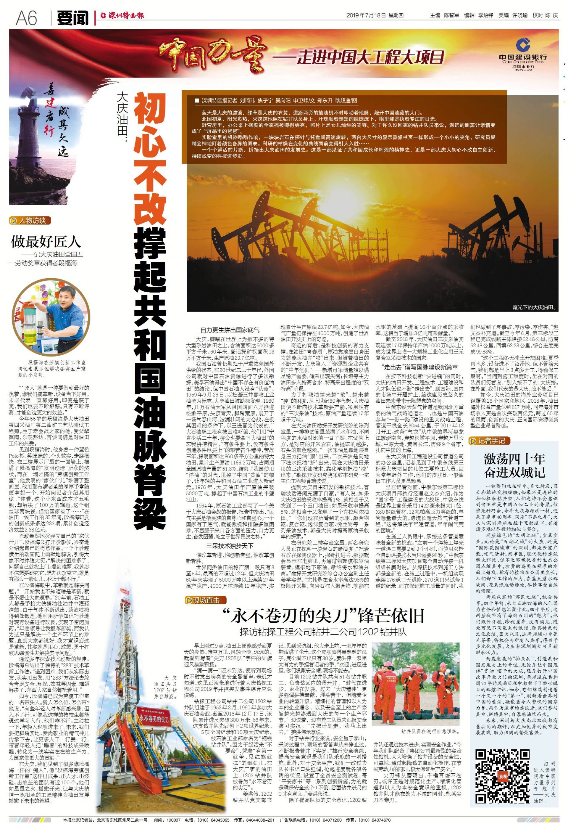 兩座發(fā)展的“排頭兵”,創(chuàng)造共和國發(fā)展史上的奇跡。無論是讓中國甩掉“貧油”帽子的大慶,還是打開中國改革開放大門的深圳,兩座城在共和國70年的風(fēng)雨歷程中都留下了舉世矚目的輝煌印記。如今,它們繼續(xù)創(chuàng)造著一個(gè)又一個(gè)的“第一”,刷新著世界對中國的看法,凝聚著令人贊嘆的國家力量。而作為城市的建設(shè)者,我們參與其中,拼搏其中,自豪感油然而生。