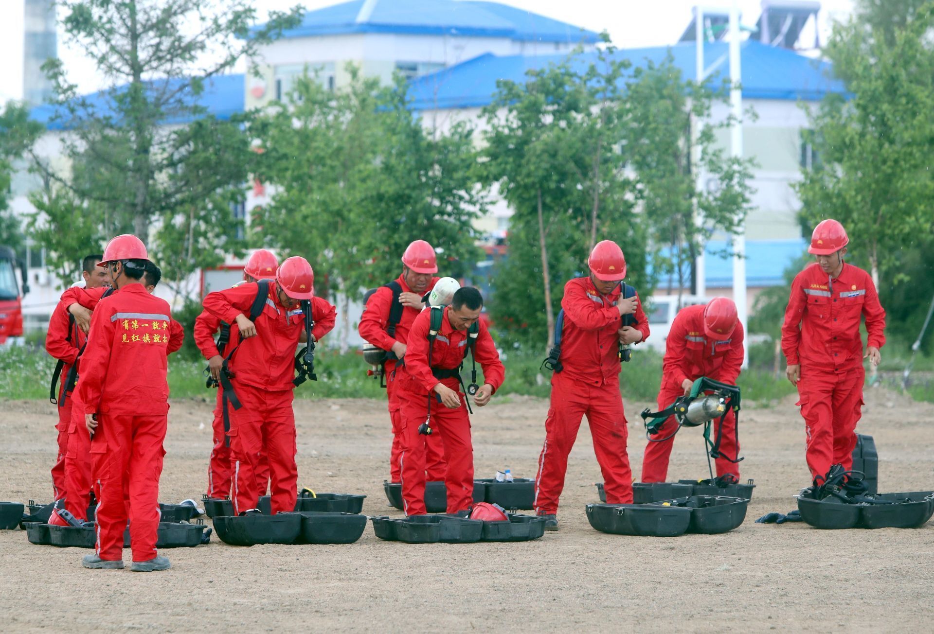 1202尖刀隊(duì)鉆井隊(duì)員在進(jìn)行應(yīng)急事故演練。