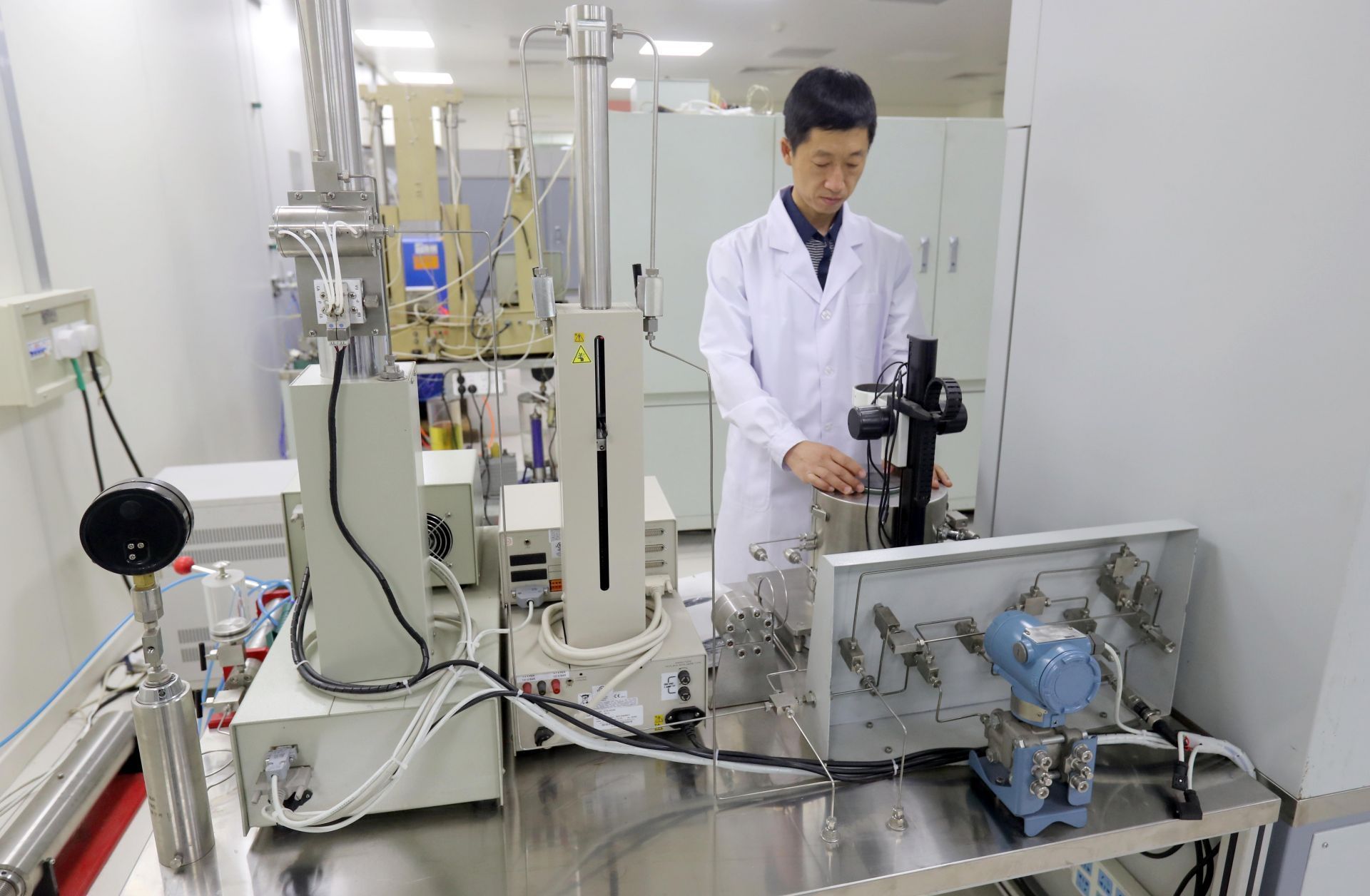 大慶油田勘探開發(fā)研究院的科研人員在進(jìn)行油井鉆探相關(guān)實(shí)驗(yàn)。