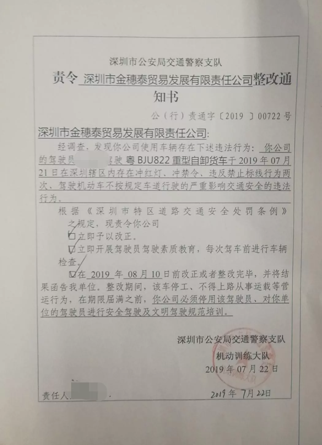 粵BJU822號(hào)泥頭車停駛排查安全隱患,司機(jī)安全教育學(xué)習(xí)20天;