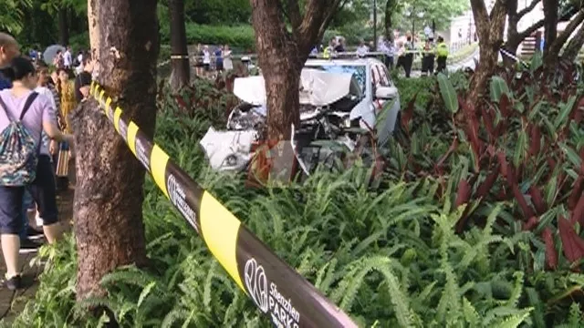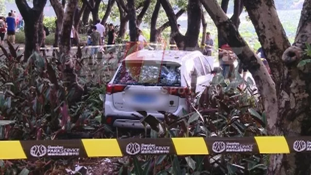 據(jù)現(xiàn)場目擊者稱當時車輛直接碾過人行綠道并撞飛了兩個小孩,最終車頭撞向荷花塘邊的一棵大樹才停住,如果不是這棵大樹阻擋,這輛車很有可能會沖向荷花塘里。