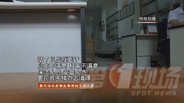 ▲小區(qū)物管人員上門清理“牛皮癬”