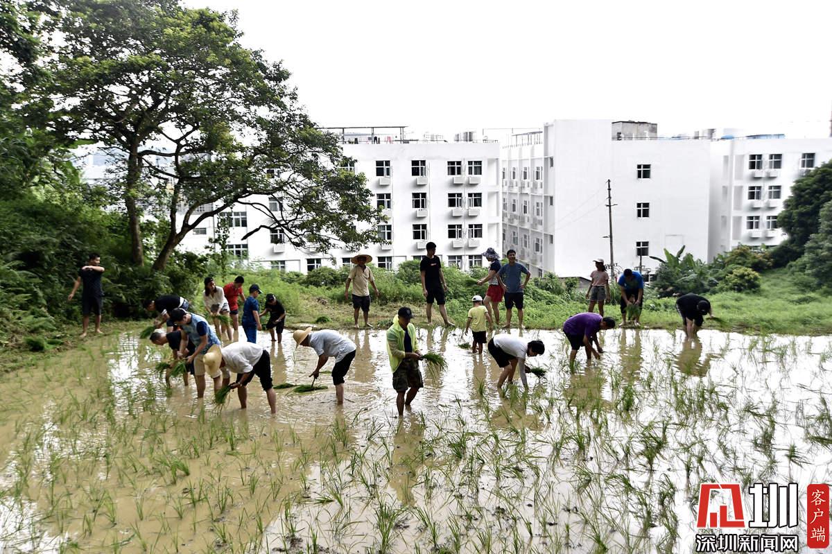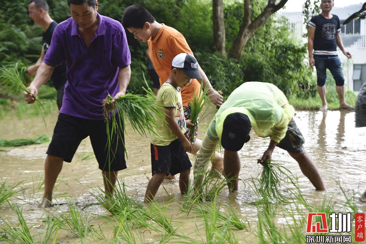 據(jù)了解,本次參加活動(dòng)的青少年有100多名,他們手持秧苗,腳踩泥漿,在社區(qū)老黨員和家長(zhǎng)的指導(dǎo)下體驗(yàn)插秧農(nóng)耕作業(yè)。據(jù)南嶺村社區(qū)黨委書(shū)記張育彪介紹,在深圳高速城市化進(jìn)程中,南嶺村特意保留了20畝水稻田,作為青少年的勞動(dòng)教育基地?!澳康氖亲尯⒆觽儾灰泟趧?dòng)人民的本色,”他說(shuō),“通過(guò)感受勞動(dòng)的艱辛,教育他們要熱愛(ài)勞動(dòng),富而思進(jìn)?!?/p>
