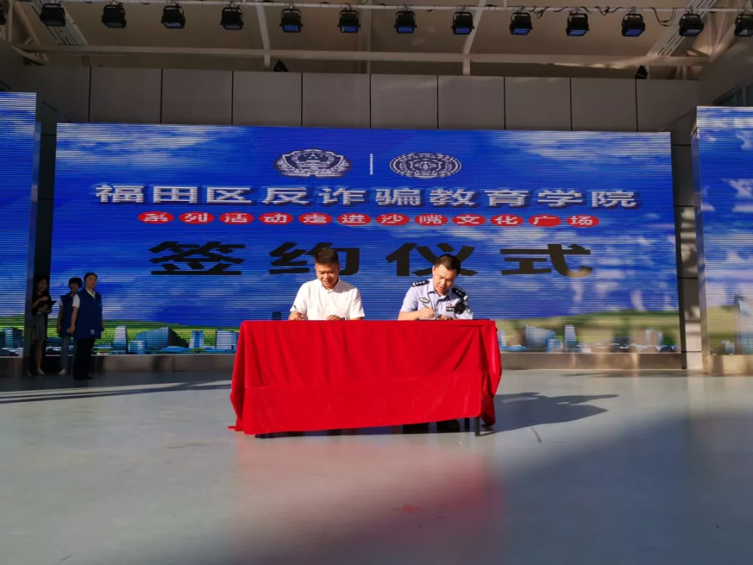 活動現(xiàn)場,肖劍平所長與沙頭街道辦黨工委副書記熊新清及沙嘴實(shí)業(yè)股份有限公司簽署了《福田反詐騙教育專刊》戰(zhàn)略合作協(xié)議。