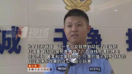 民警得知,有一男一女兩名自稱是“水質(zhì)管理局”負責自來水的工作人員打著“水質(zhì)不佳,水質(zhì)管理局規(guī)定必須安裝”的旗號,向居民推銷凈水器。由于有看似正規(guī)的工作證件,同時流程完善,還承諾事后可以根據(jù)需求退款,有不少市民都繳納了600元的押金,直至發(fā)現(xiàn)并沒工作人員上門安裝服務時,再向房東等人員核實后,才發(fā)現(xiàn)被騙。
