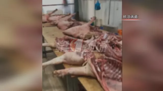 血跡斑斑的墻壁和地面、簡(jiǎn)單組裝的加工臺(tái)、一扇扇切割好的豬肉就這樣隨意堆放在臺(tái)面以及地上。