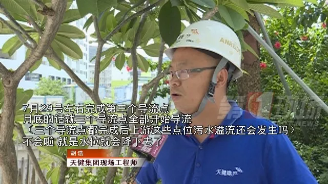 針對目前大量污水入河的問題,施工方表示因為水量太大不好采取收集措施,所以在下游導流施工結束前他們只能暫時讓污水流入河道中。