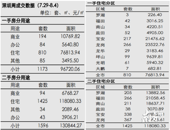 表1:深圳周成交數(shù)據(jù)分類統(tǒng)計(jì)表(7.29-8.4)