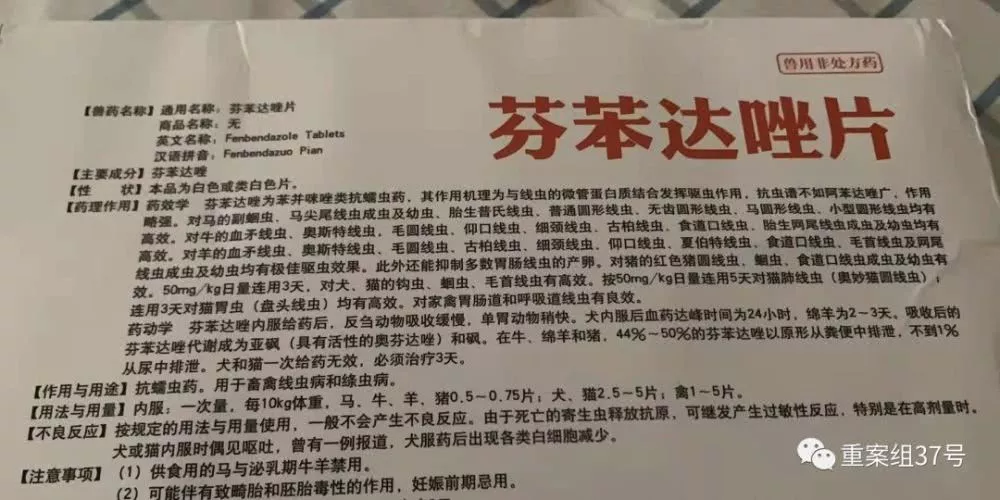 專家表示,芬苯達唑畢竟是獸用驅(qū)蟲藥,它的劑型是為了方便投喂動物,安全性也僅僅達到動物藥標準,其對人體的毒副反應、藥物相互作用都是未知數(shù),無法預測服用后會發(fā)生什么后果。
