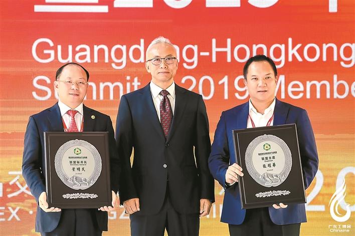 ▲2019年8月8日,中國國際貿易促進委員會機械行業(yè)分會會長孫喜田(中)向張耀華(右一)授予粵港澳先進制造業(yè)產業(yè)聯(lián)盟主席牌匾。