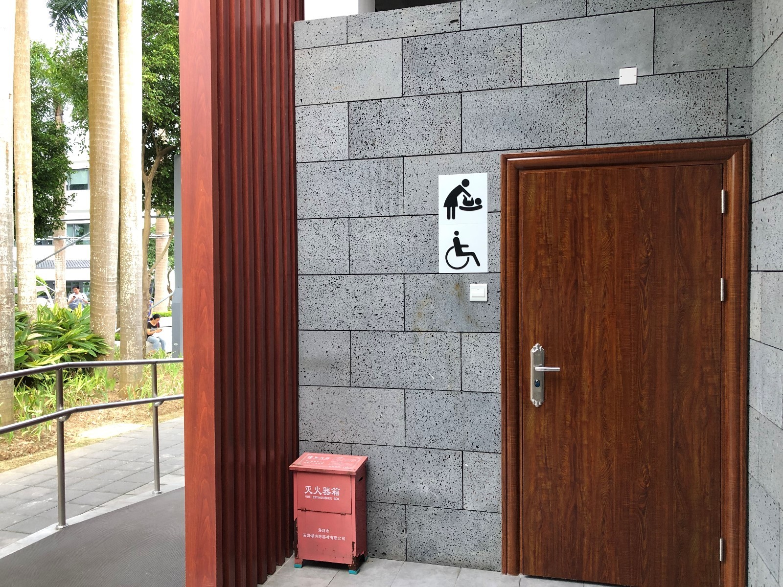 ▲記者來到深圳人頗為喜愛的“網(wǎng)紅公園”——香蜜公園采訪時,正值夕陽西下,天氣由炎熱略轉(zhuǎn)涼爽,很多家長帶著孩子在兒童游樂場里嬉戲。游樂場附近有一個公共廁所,記者沒有找到親子衛(wèi)生間,但也在公廁門口發(fā)現(xiàn)了母嬰室、殘疾人衛(wèi)生間“二合一”的衛(wèi)生間,內(nèi)有一個帶扶手的坐便器和母嬰設(shè)施。