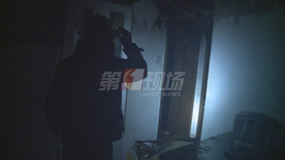 現(xiàn)場有消防人員陸續(xù)從著火單位里走出來