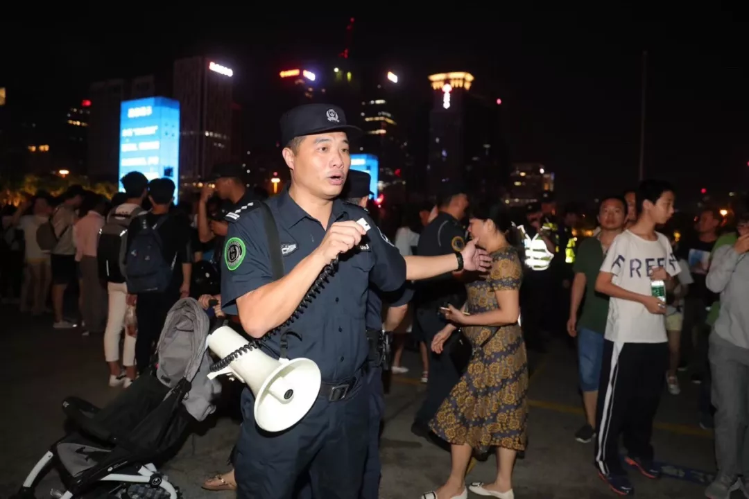 “注意安全,不要擁擠,照顧好老人和小孩?!蹦硰V場(chǎng)擁擠的人群中,福田公安分局機(jī)動(dòng)訓(xùn)練大隊(duì)副大隊(duì)長(zhǎng)黃裕青拿著大喇叭喊道。他的臉熱得通紅,汗珠大顆大顆地往下掉,但卻始終沒(méi)停下巡邏的腳步。嗓子沙啞了,他便喝口水潤(rùn)潤(rùn),繼續(xù)在人群中穿梭,在維護(hù)秩序的同時(shí),為有需要的人提供幫助。