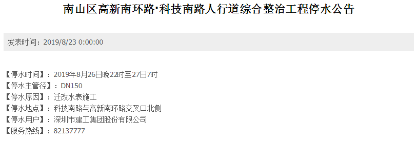 停水時(shí)間:2019年8月26日晚22時(shí)至27日7時(shí)
