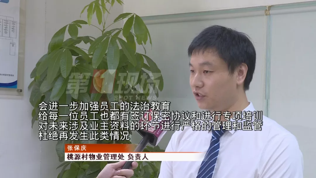 今天記者來到桃源小區(qū)物業(yè)管理處,負責人介紹稱在今年6月確實有兩名員工在工作期間被警方帶走,在事情發(fā)生后公司才得知兩名員工涉嫌泄漏業(yè)主個人資料。