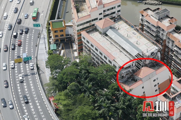紅圈處就是和平新居倒塌的樓(深圳新聞網(wǎng)記者 楊浩翰 攝)