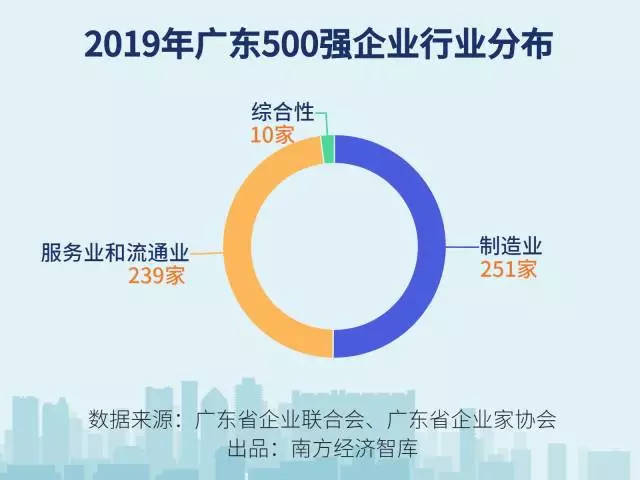 從行業(yè)分布來(lái)看,制造業(yè)企業(yè)251家,占比50.2%;服務(wù)業(yè)和流通業(yè)企業(yè)239家,占比47.8%;綜合性企業(yè)10家。