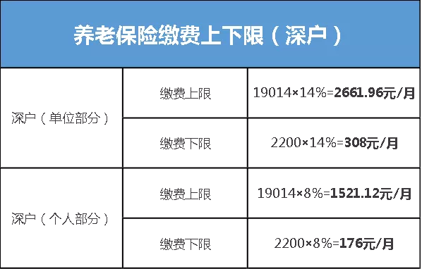 繳費基數(shù):為職工上月工資總額,最高為上年度廣東省全口徑城鎮(zhèn)單位就業(yè)人員月平均工資6338元的3倍,即19014元,最低為深圳市最低月工資標準2200元。