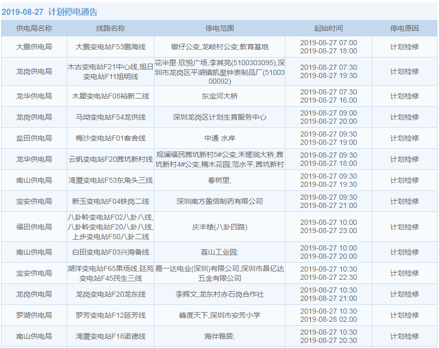8月27日,今年第12號臺風“楊柳”正式生成,雖然其中心還位于距離深圳1570公里的菲律賓以東洋面上,但未來幾天,深圳的悶熱天氣是安排上了。更慘的是,據(jù)中國南方電網(wǎng)消息,8月27日起至9月12日,深圳這部分地區(qū)要停電了!快來看看有沒有你家的吧。