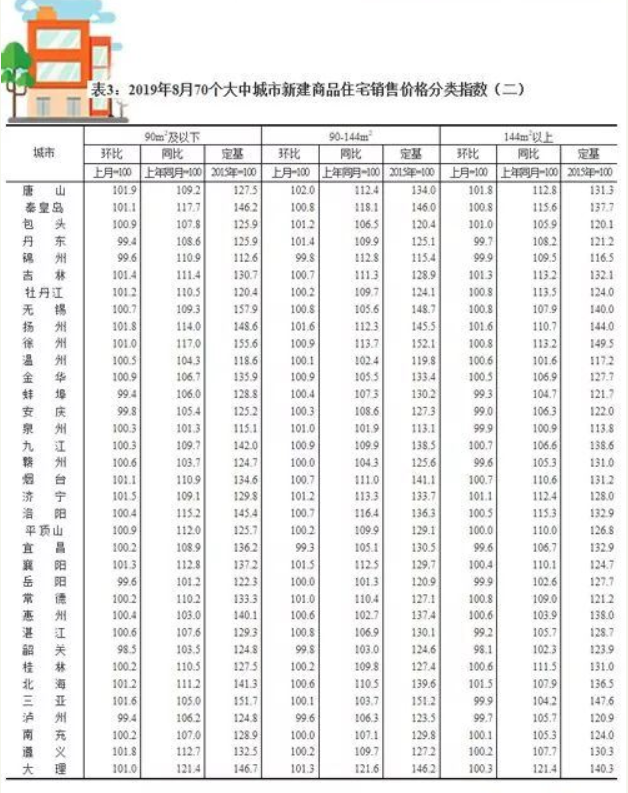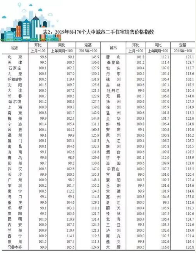 2019年8月份70個(gè)大中城市