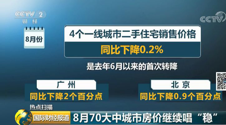 央視財(cái)經(jīng)2019年9月18日訊 近日,國(guó)家統(tǒng)計(jì)局發(fā)布了8月份70個(gè)大中城市商品住宅銷(xiāo)售價(jià)格變動(dòng)情況:一二線城市新建商品住宅和二手住宅銷(xiāo)售價(jià)格環(huán)比、同比漲幅均與上月相同或回落;三線城市新建商品住宅銷(xiāo)售價(jià)格環(huán)比漲幅與上月相同,二手住宅漲幅微升。