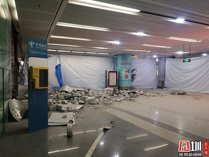記者在事故現(xiàn)場(chǎng)看到,受損車輛已經(jīng)被拖走,大廳內(nèi)一地瓦礫