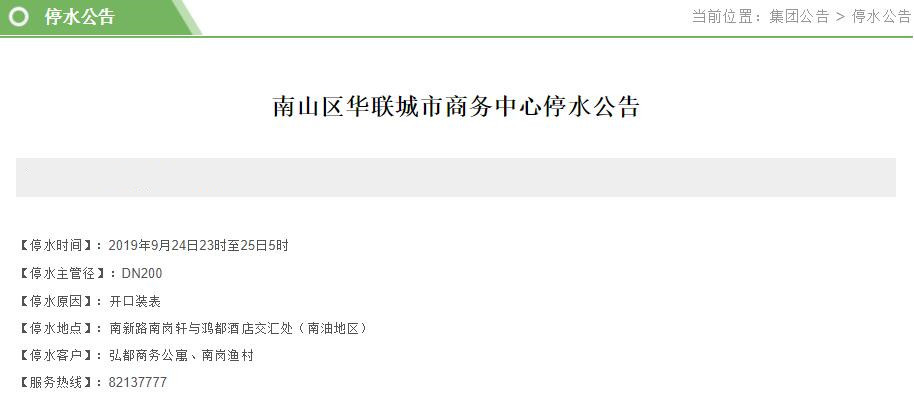 停水時(shí)間:2019年9月24日23時(shí)至25日5時(shí)