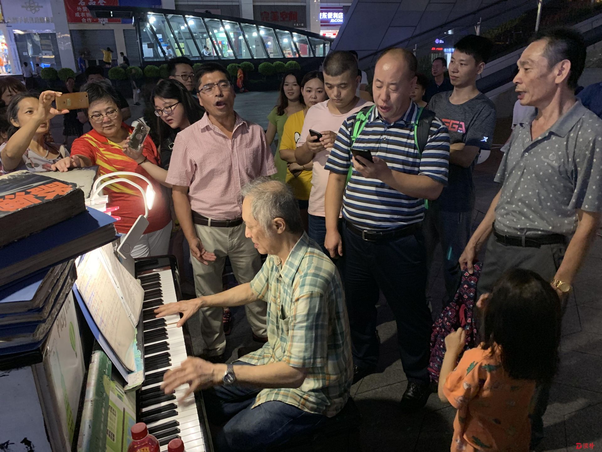 深圳特區(qū)報(bào)2019年9月23日訊 每天晚上9點(diǎn),一場(chǎng)小型的“鋼琴音樂(lè)會(huì)”準(zhǔn)時(shí)在華強(qiáng)北商業(yè)街上演。“音樂(lè)會(huì)”的聽眾默契地圍在鋼琴邊上,一首接一首地給坐在琴凳上的老人點(diǎn)歌。