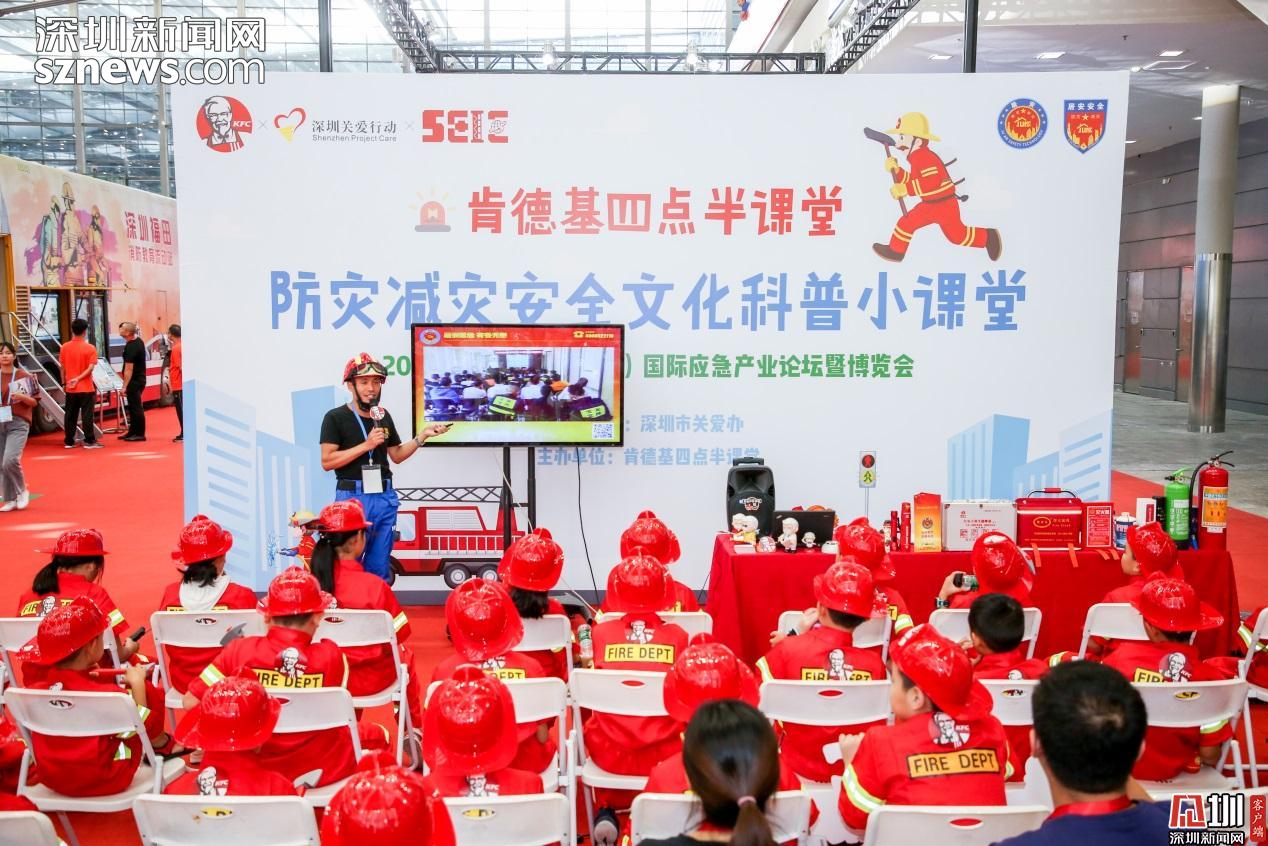 見圳客戶端、深圳新聞網(wǎng)2019年9月23日訊(見圳客戶端、深圳新聞網(wǎng)記者 陳彬)頭戴消防安全帽,手持mini滅火器,身穿靚麗正紅的消防服裝,9月21日,在深圳會展中心的深圳國際應急博覽會上,一群可愛的小小消防員們吸引了全場的目光。原來,這是“肯德基四點半防災減災科普小課堂”正在深圳國際應急博覽會上舉行。30名小朋友們裝備齊全,神采奕奕地 cosplay了一把“小小消防員”。他們認真聽消防教官的科普演講,參觀消防教育科普雙層巴士,近距離感受消防車、應急無人機等專業(yè)的防災救援高科技裝備的硬核魅力……獨特的消防體驗讓同學們十分興奮。