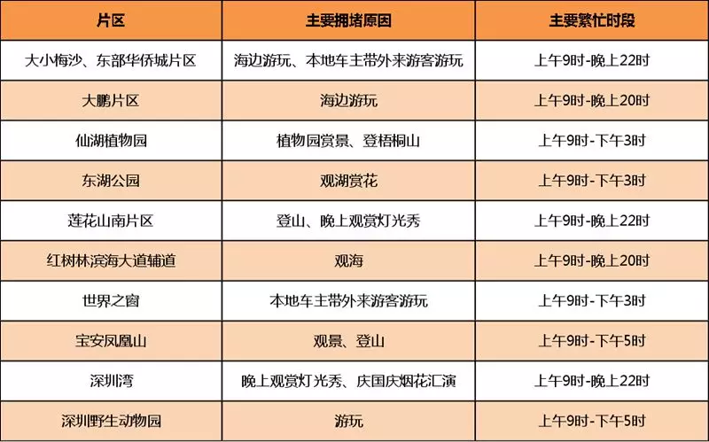假日期間市內(nèi)交通每個時間段相對均衡,不會出現(xiàn)工作日的早晚高峰,車輛主要集中在市內(nèi)各景點和商圈周圍,預計東部景區(qū)將會迎來巨大壓力,尤其是大小梅沙、東部華僑城、鹽壩高速葵涌出口。