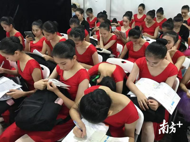 在晚會的另一個彩排候場點,36名來自深圳高級中學(xué)舞蹈團(tuán)的參演學(xué)生在彩排和演出間隙仍然抓緊學(xué)習(xí)。深圳高級中學(xué)舞蹈團(tuán)老師高潔說,這是舞團(tuán)候場的常態(tài),“為了不耽誤學(xué)習(xí),經(jīng)常得抓緊間隙進(jìn)行學(xué)習(xí)。”