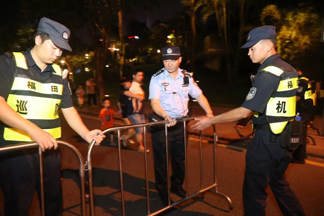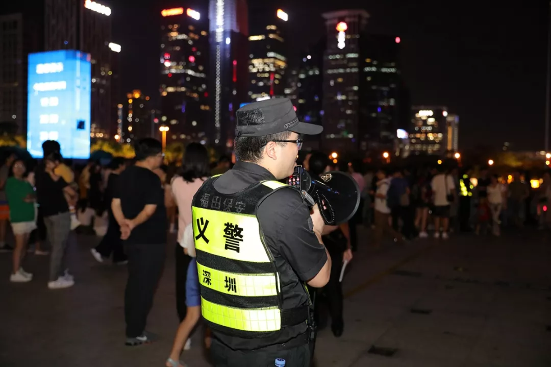 此外,福田公安分局根據(jù)市民中心和蓮花山頂廣場(chǎng)的每日人流負(fù)荷情況實(shí)時(shí)調(diào)整,及時(shí)協(xié)調(diào)城管調(diào)控?zé)艄庑悴コ鰰r(shí)間并加演,避免人流停滯,緩解疏導(dǎo)壓力。值得一提的是,為了方便市民夜間行走,觀賞區(qū)特地“開(kāi)辟”了幾條新的應(yīng)急道路,并在所有“黑暗死角”都加裝了應(yīng)急燈。福田公安分局指揮處處長(zhǎng)張保軍表示:“在安保警力多次實(shí)地巡查后,及時(shí)發(fā)現(xiàn)問(wèn)題并整改、疏通光線不足及堵塞人群的道路,使市民們?cè)谟^看完燈光秀后能夠更加安全、快捷地離開(kāi)?!背艘酝猓谌肆髅芗臒艄庑悻F(xiàn)場(chǎng),孩童走失、物品遺失的情況也有發(fā)生,安保人員不斷地通過(guò)廣播尋人、尋物,進(jìn)行實(shí)名登記,盡心盡力地為市民、游客解決切身難題。