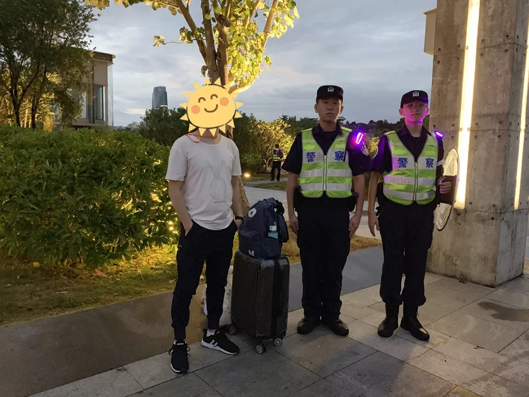 10月6日,深圳市公安局福田分局機動訓練大隊摩托車中隊隊員楊斌、翁紹允在巡邏途中發(fā)現(xiàn)一個行李箱和一個書包無人認領,他們便在原地等待失主,約半小時后失主前來認領行李,在核實失主身份后物歸原主,失主表示衷心感謝。