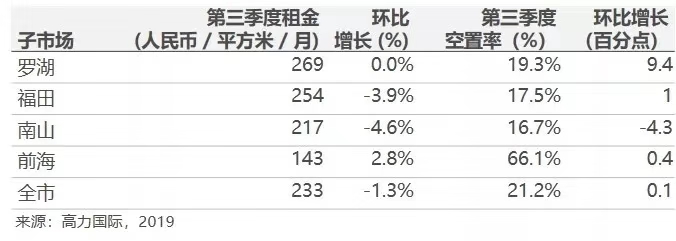 2019年第三季度,深圳甲級(jí)寫(xiě)字樓市場(chǎng)保持較為健康和活躍的態(tài)勢(shì),本季度內(nèi)市場(chǎng)凈吸納量表現(xiàn)良好,且新增供應(yīng)面積相比上一季度有所下降,空置率也穩(wěn)定在21.1%。但是,我們認(rèn)為空置率在第四季度會(huì)再次上升且持續(xù)到2020年,取決于計(jì)劃中的新增供應(yīng)完工入市情況。