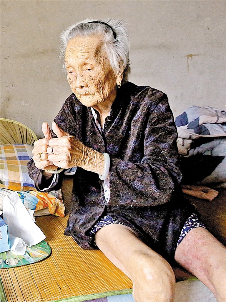 9月底,陽光明媚的上午,101歲的陳汝金像往常一樣坐在家里,陽光照進(jìn)屋子,照在她的臉上,一切顯得平靜安詳。福永街道鳳凰社區(qū)工作站的工作人員帶著鮮花和水果,和記者一起來到老人家里。這一天,老人的外孫女文小姐和孫媳婦也正好回來看望她。