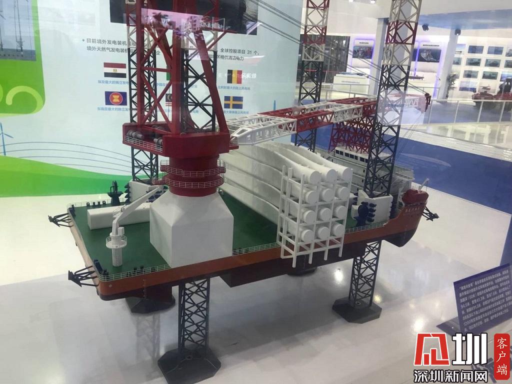 全球首例桁架式樁腿自升風電安裝平臺——“海龍興業(yè)號”模型。