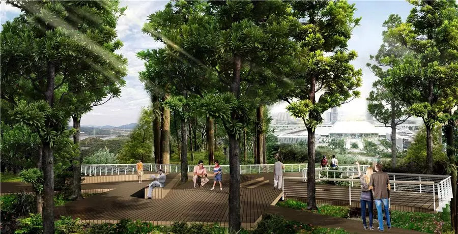 充分利用山頂?shù)匦危浴叭耍拧钡男问浇M合而成,取名為人才臺。節(jié)點視線佳,東望深圳北站商務(wù)區(qū),西眺長嶺陂水庫,是一個絕佳的休憩觀景平臺。