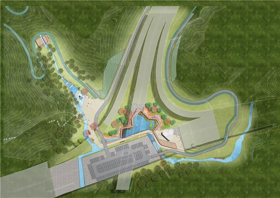拼搏巖嶺的設(shè)計試圖恢復(fù)場地記憶,以石材結(jié)合銹板的形式塑造場地表達(dá)堅韌精神,同時保留現(xiàn)狀的巖生植物表達(dá)頑強(qiáng)拼搏的生命力。