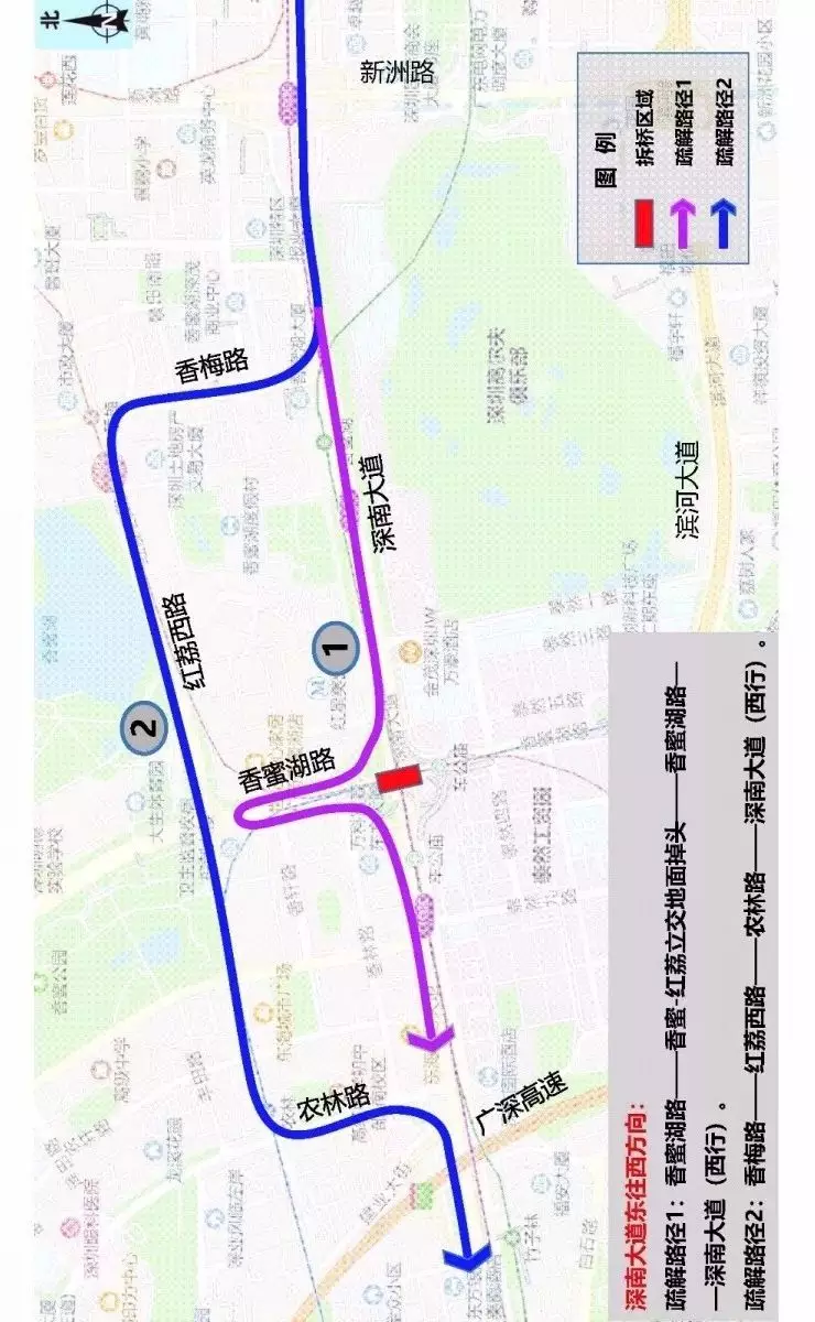 疏解路徑2:香梅路→紅荔西路→農(nóng)林路→深南大道(西行)