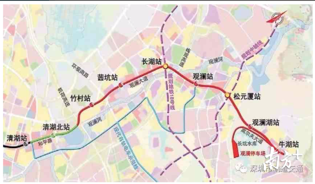 線路共設(shè)車站8座,分別為:清湖北站、竹村站、茜坑站、長湖站、觀瀾站、松元廈站、觀瀾湖站、牛湖站,其中清湖北站為高架站。