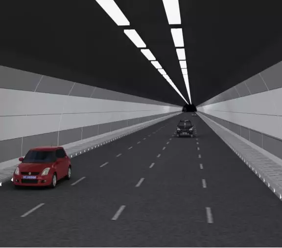 參照香港海底隧道形式,隧道洞內采用燈帶式照明