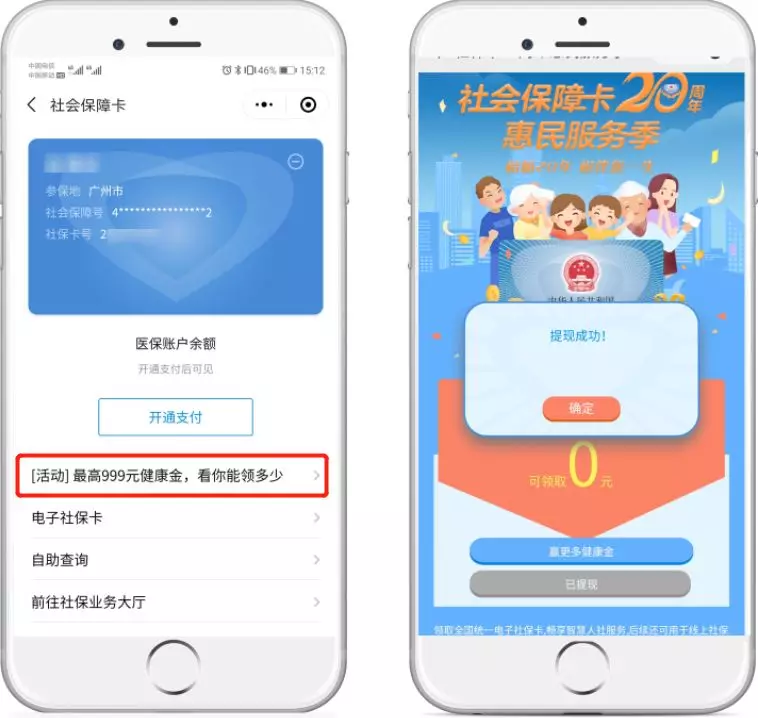 綁定電子社??ê螅赏ㄟ^社??ㄔ斍轫?,回到活動首頁,點(diǎn)擊“提現(xiàn)到零錢”,馬上提現(xiàn)。