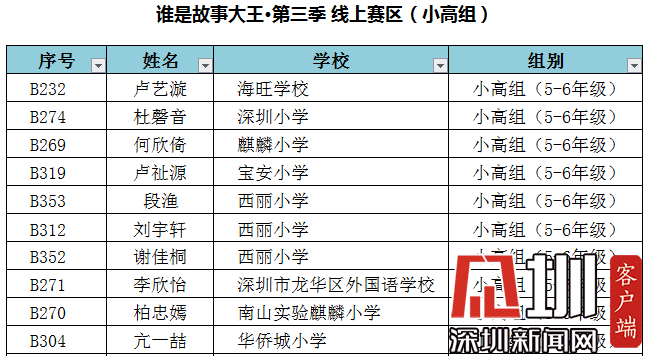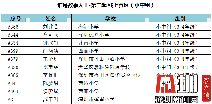 附:“誰(shuí)是故事大王·第三季”-線(xiàn)上賽區(qū)晉級(jí)深圳市復(fù)賽名單